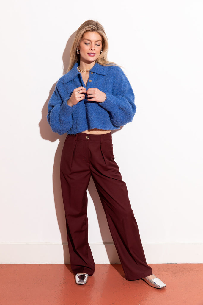 The perfect way to wear burgundy this season. The Cherry Cola Trouser is designed with a mid-rise wide leg that comes with side pockets and a front pleat detail. Style with a button down or an off the shoulder top for a trendier look.