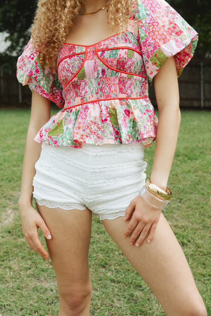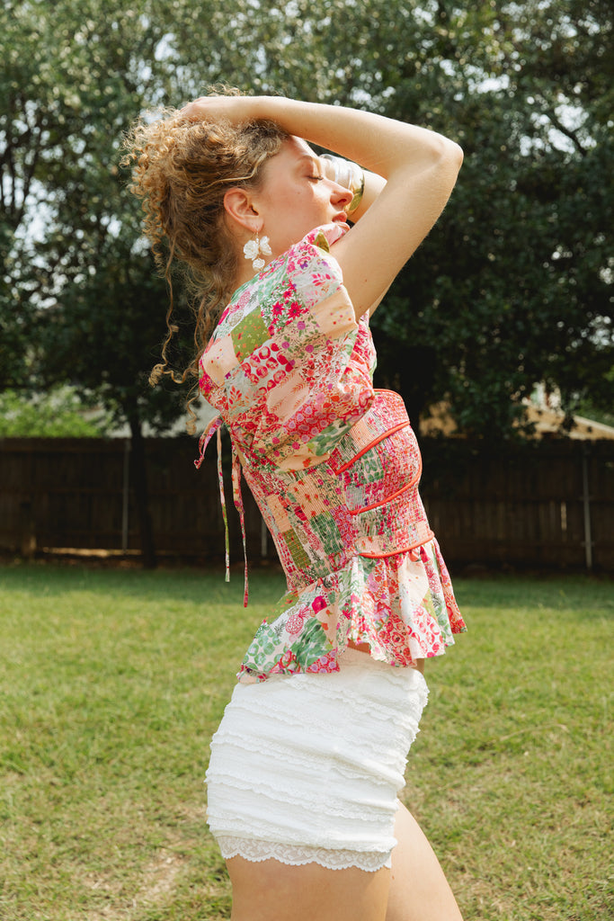 The Devon Floral Top delivers adorable charm with its all-over elastic fit. Complete with a supportive back tie, this sweet piece adds instant cuteness to any outfit.